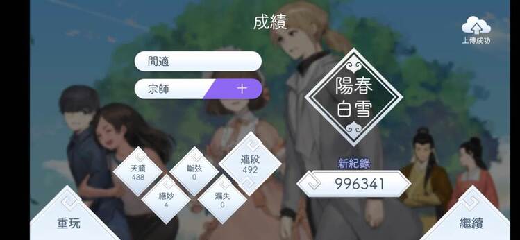 之前玩「困難」譜面的「真·陽春白雪」成績