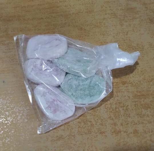 利用糯米粉製成的半透明糕點,中間有着標誌性的粉紅色(或淺綠色)螺旋紋路,再撒上白色的麵粉覆蓋外層。